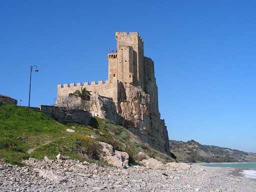 Costruito dai Normanni nell’XI secolo e trasformato da Federico II di Svevia nel XIII secolo, questo castello si erge maestoso su una scogliera a picco sul Mar Ionio. La sua struttura trapezoidale con tre torri lo rende unico nel suo genere, e la leggenda narra che abbia custodito la Sacra Sindone tra il 1204 e il 1253. Dalla sua posizione panoramica, offre viste spettacolari sulla costa e un’atmosfera ricca di storia e mistero.